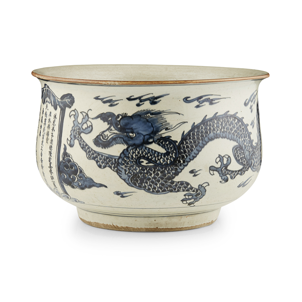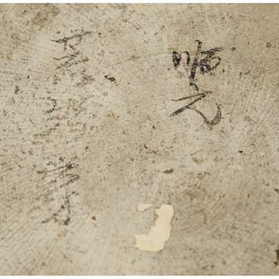 painted with a pair of four-clawed dragons flanking a rectangular panel inscribed with dedication to the Taoist immortal Zhenwu, also known as Xuandi, dated the fifty-third year of Kangxi period