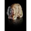 shown in a recumbent position with trunk swung to one side, the stone of a combination of brown and pale green tones with russet inclusions
