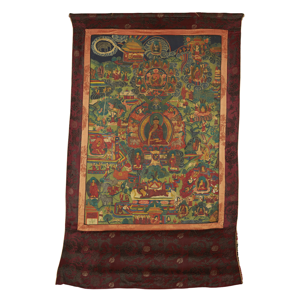 THANGKA DEPICTING SCENES FROM THE LIFE OF BUDDHA SHAKYAMUNI