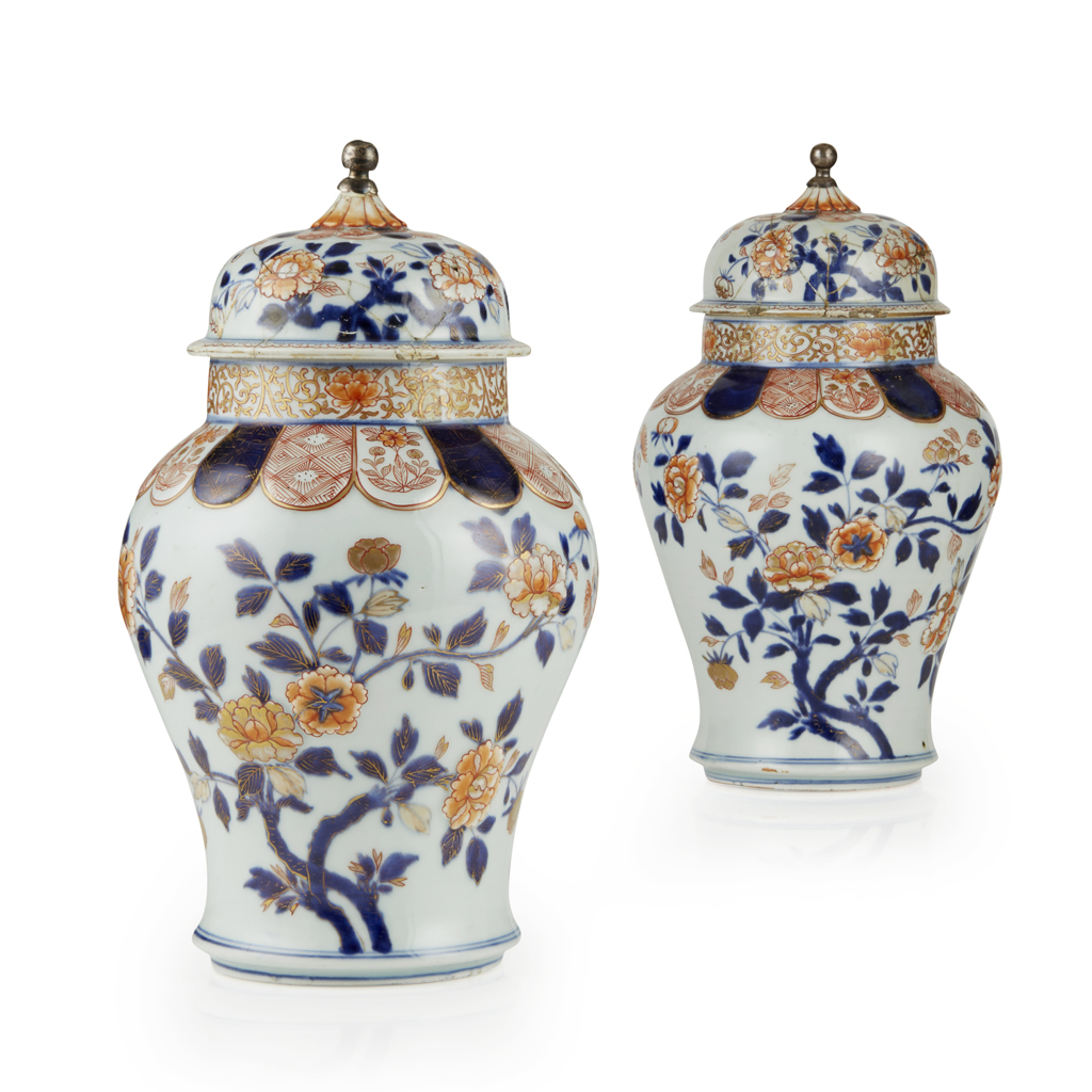 PAIR OF IMARI BALUSTER JARS AND COVERS