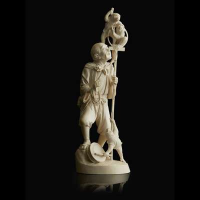 FINELY CARVED IVORY OKIMONO OF A MONKEY TRAINER Y