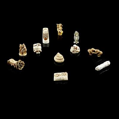 COLLECTION OF ELEVEN CARVED IVORY NETSUKE Y