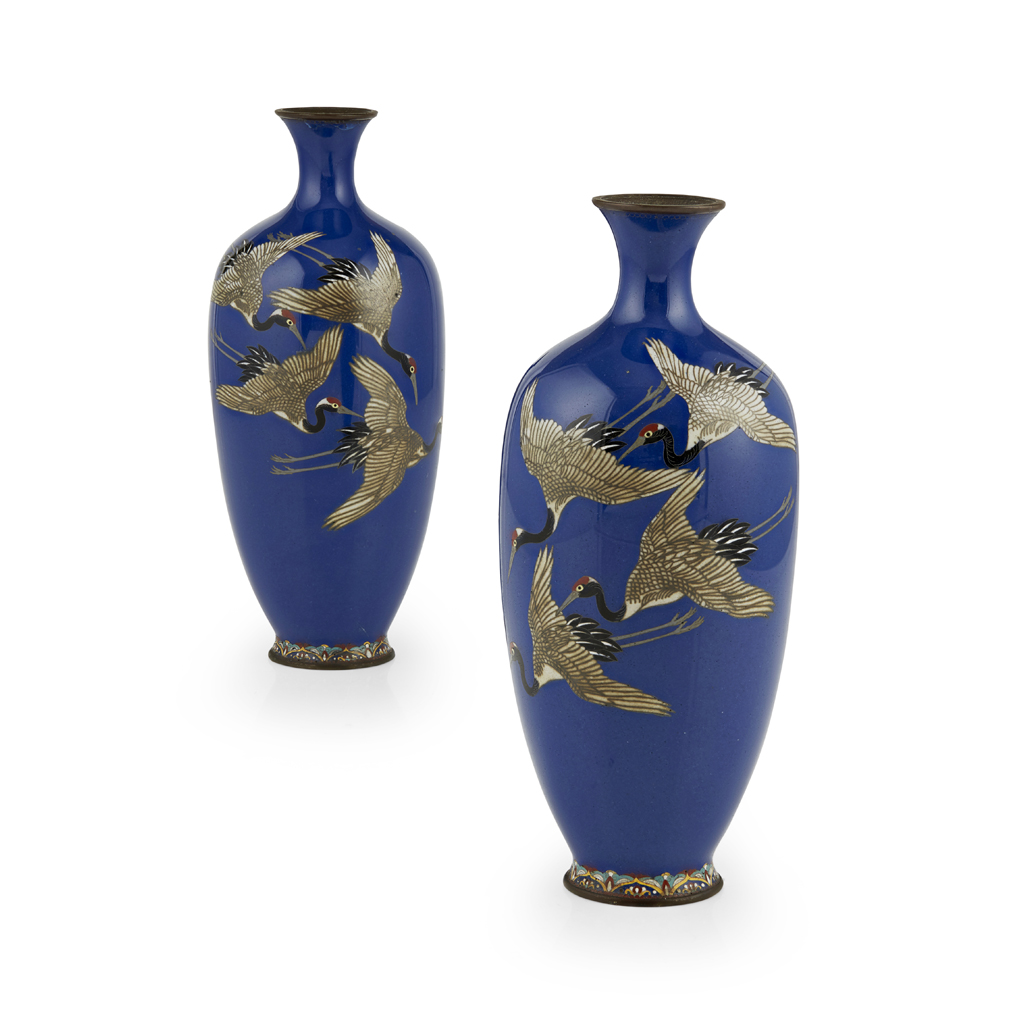 PAIR OF CLOISONNÉ ENAMEL 'CRANES' VASES