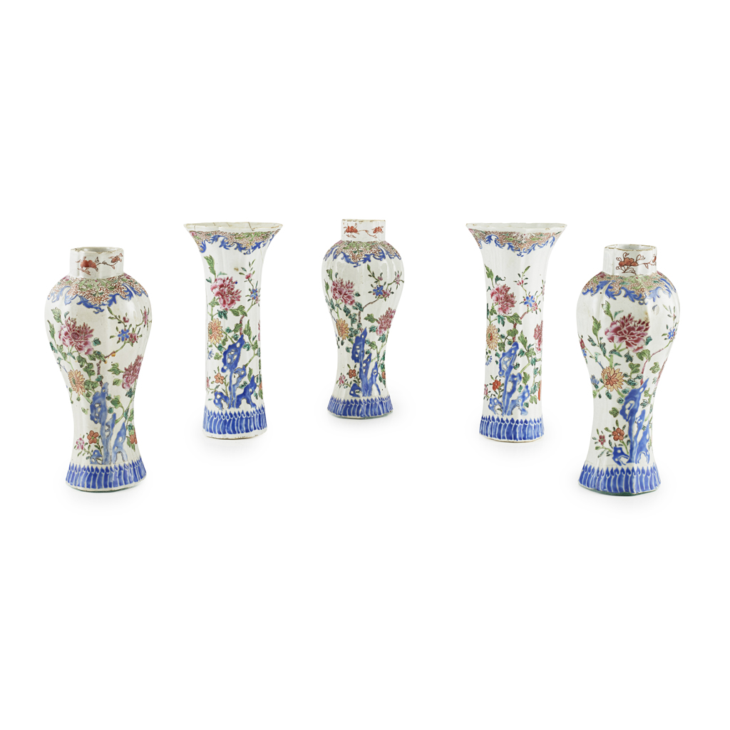 EXPORT FAMILLE ROSE FIVE-PIECE GARNITURE