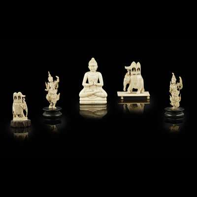 GROUP OF FIVE SOUTH ASIAN IVORY CARVINGS Y