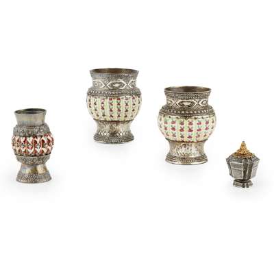 GROUP OF FOUR SOUTHEAST ASIAN WHITE METAL VESSELS