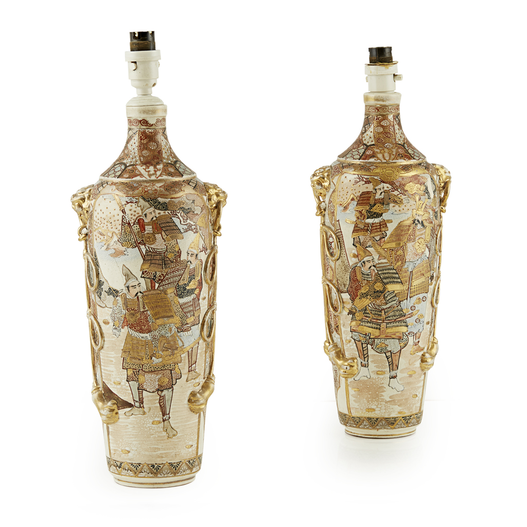 PAIR OF SATSUMA MORIAGE VASES CONVERTED INTO LAMPS