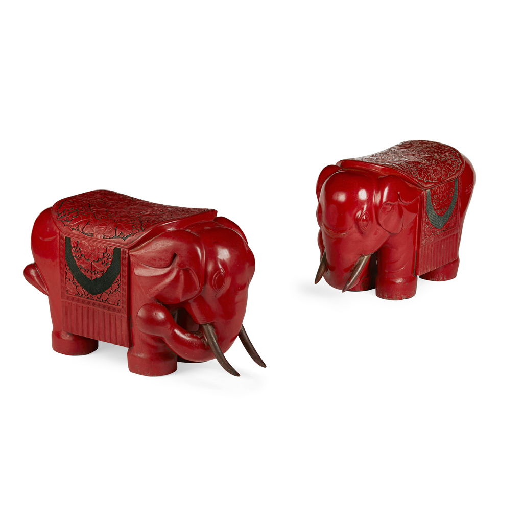 PAIR OF CINNABAR LACQUER ELEPHANT-FORM STOOLS