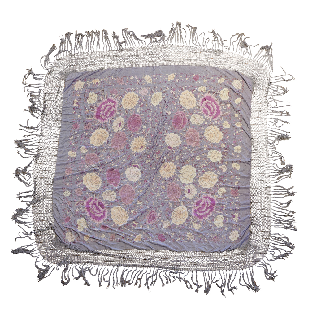 LARGE SQUARE EMBROIDERED SILK SHAWL