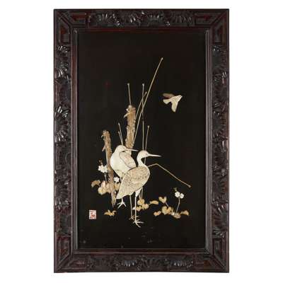 FINE PAIR OF IVORY INLAID LACQUERED PANELS Y