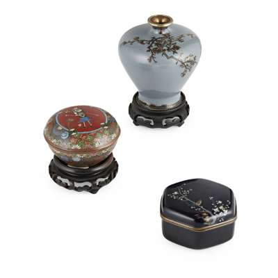 GROUP OF THREE SMALL CLOISONNÉ ENAMEL ARTICLES