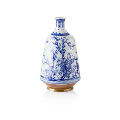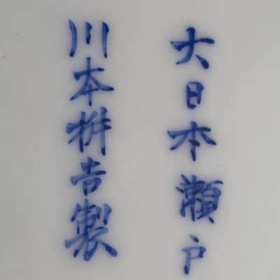 densely and delicately painted in underglaze blue with a profusion of flowering spring plants, signed "Dai Nippon, Seto, Kawamoto Masukichi sei' to the base