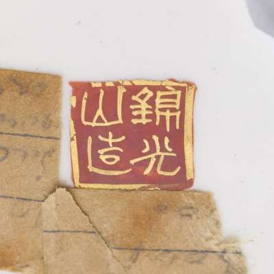 decorated in enamels and gilt, showing a cockerel below bamboo branches and surrounded by four hens, standing next to the group a further cockerel, two hens and six chicks foraging for food, signed on the base in gilt Kinkozan zo