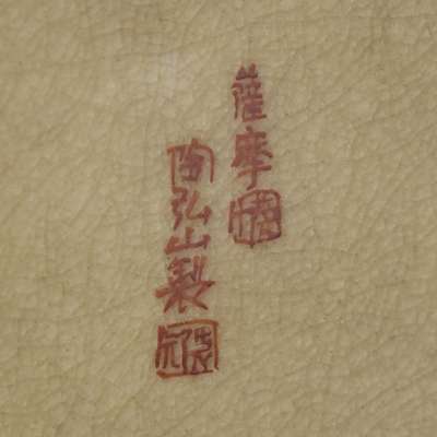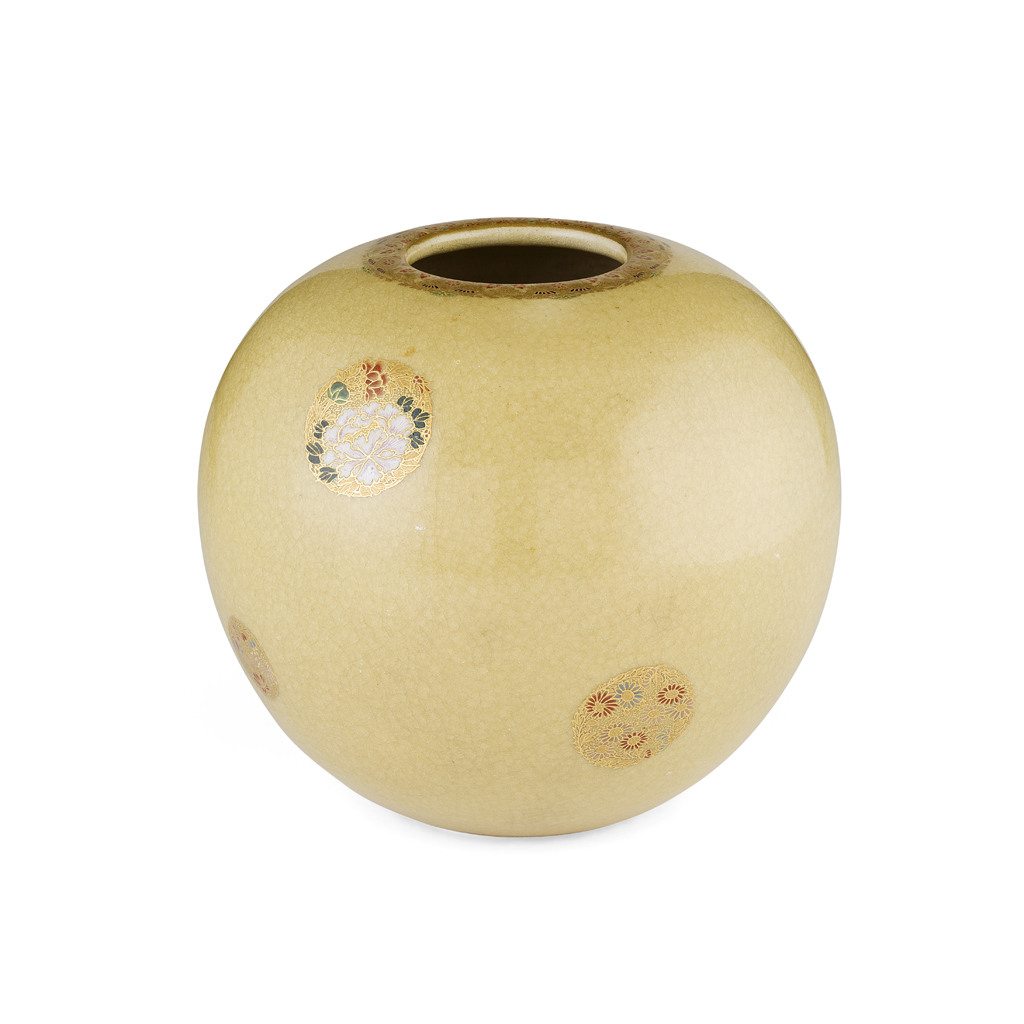 painted in polychrome enamels and gilt on a fine crackle-glaze ground with roundels enclosing chrysanthemum and peony flowerheads