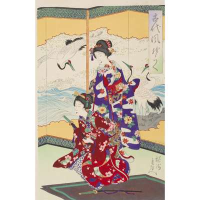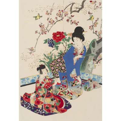 including amongst others one print from the triptych 'Excursion to Ueno Park with Cherry Blossoms in Full Bloom' and 'Cherry-blossom Viewing' from the series 'Chiyoda Inner Palace' (qty)