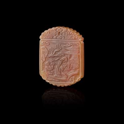WHITE JADE 'BAMBOO AND LINGZHI' PENDANT