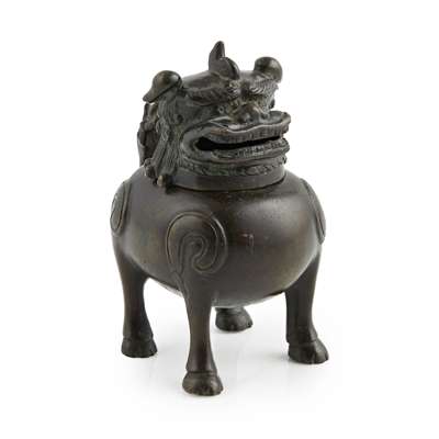 BRONZE 'BUDDHIST LION' CENSER AND COVER