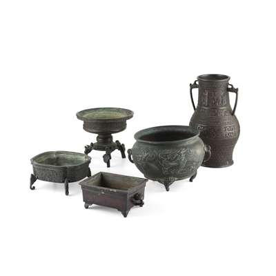 ASSEMBLED GROUP OF FIVE BRONZE ARTICLES