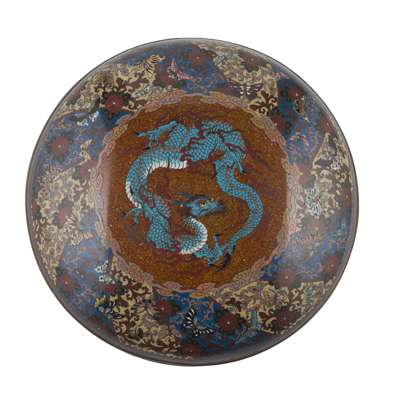 LARGE CLOISONNÉ ENAMEL CIRCULAR BOX AND COVER