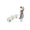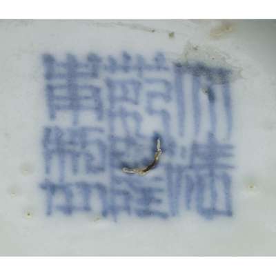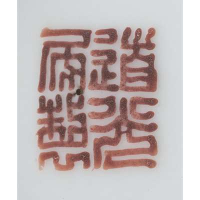 each painted with blossoming chrysanthemum, prunus, lotus and peony sprays, the base with a four-character Daoguang iron-red seal mark; together with a FAMILLE ROSE FIGURE OF A FEMALE IMMORTAL, REPUBLIC PERIOD; and a FAMILLE ROSE TEA CUP, QIANLONG MARK BUT 19TH CENTURY, painted with four female immortals against a 'rice grain' pattern ground, the base with an apocryphal six-character seal mark in underglaze blue (4)