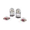 comprising: one ruby-red ground cup and one saucer, each decorated with two floral panels alternating with gilt dragon medallions; another two cups and three saucers, each painted with a cat beside fingered citrons and peonies, with two wooden display stands (7)