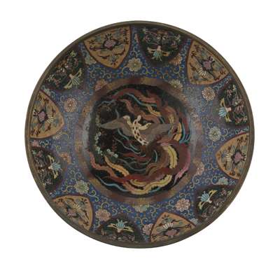 LARGE CLOISONNÉ ENAMEL CIRCULAR BOX AND COVER