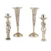 finely reticulated with a profusion of prunus flowers and buds borne on gnarled branches, the foot marked '90', 'WF' and 'Xie Tong Sheng' in Chinese; together with a pair of EXPORT SILVER CANDLESTICKS, decorated with bamboo branches (4)