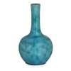 the globular body delicately incised with two striding five-clawed dragons in pursuit of a flaming pearl amid cloud scrolls, the exterior and inside of the neck all covered in a glossy turquoise glaze showing a fine craquelure