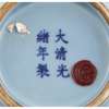 of pear shape with wide mouth, flanked with a pair of looped elephant handles, applied overall with a sky blue glaze, the base inscribed with a six-character Guangxu mark in underglaze blue