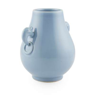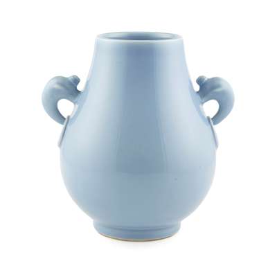 SKY-BLUE-GLAZED ELEPHANT HANDLED VASE