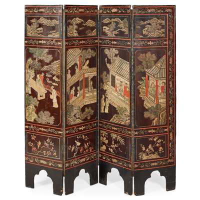 COROMANDEL LACQUER FOUR-PANEL SCREEN