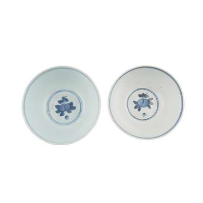明 青花鹿紋 及 花鳥紋碗 (一組兩件)