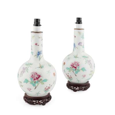 PAIR OF FAMILLE ROSE BOTTLE VASES