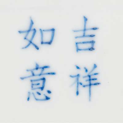 each finely depicting begonia and daffodil sprays to the interior, rim gilded, the base inscribed with 'Ji Xiang Ru Yi' (Good fortune as one wishes) in underglaze blue