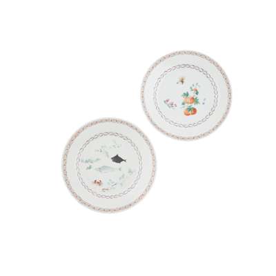清 外銷粉彩南瓜及魚蟹紋碟(一組兩件)