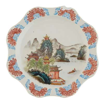 TWO FAMILLE ROSE 'LANDSCAPE' PLATES