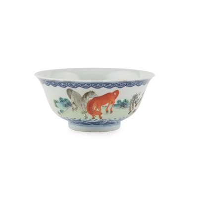 UNDERGLAZE-BLUE AND FAMILLED ROSE DECORATED BOWL