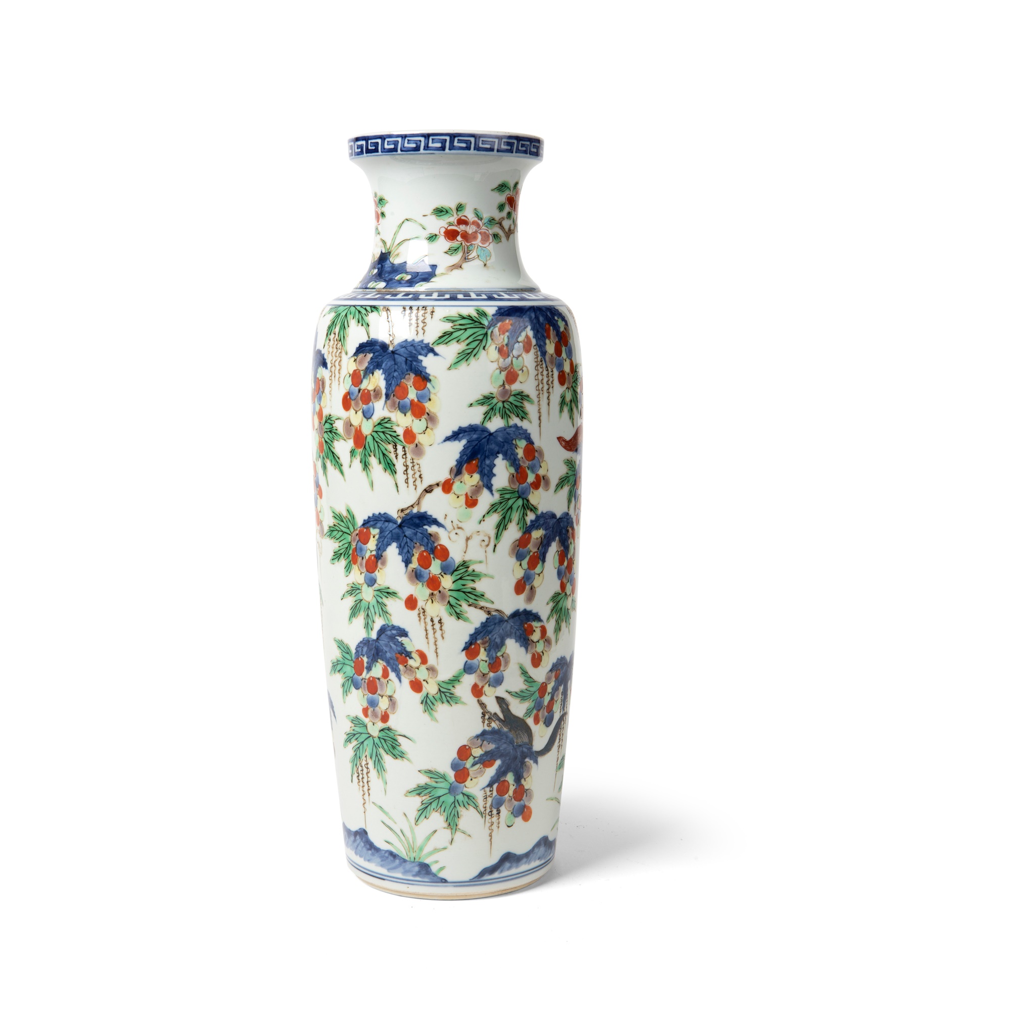 WUCAI 'SQUIRREL AND GRAPE' BALUSTER VASE
