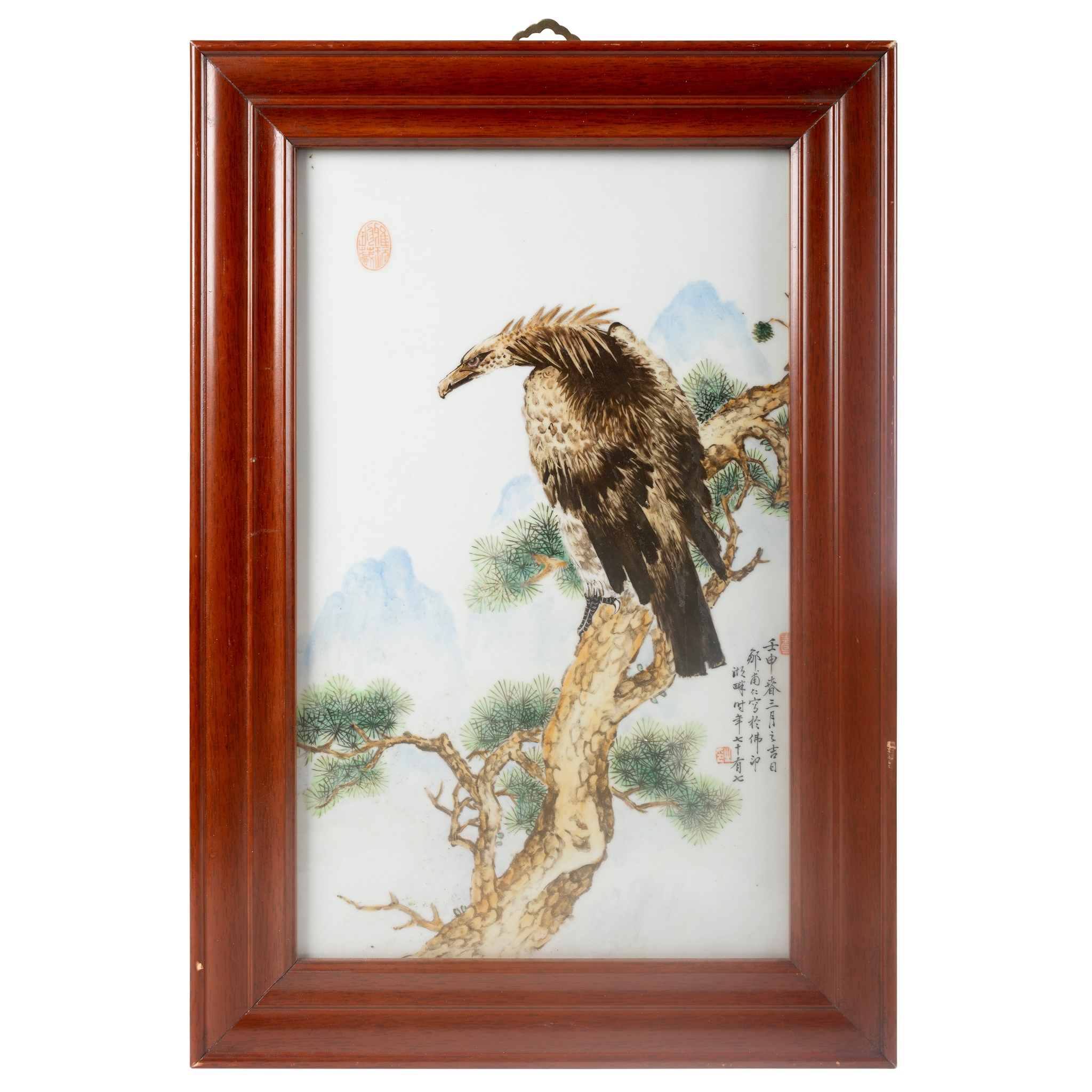 FAMILLE ROSE ' EAGLE' PORCELAIN PLAQUE