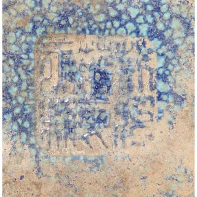with a tall square body, both the body and the domed cover covered in a thick layer of Lu-Jun-glaze fused with light and dark blue colours, the interior and the foot rim revealed the original purplish clay body, the base with a four-character 'Dan Fu Zhai Zhi' mark in archaic script