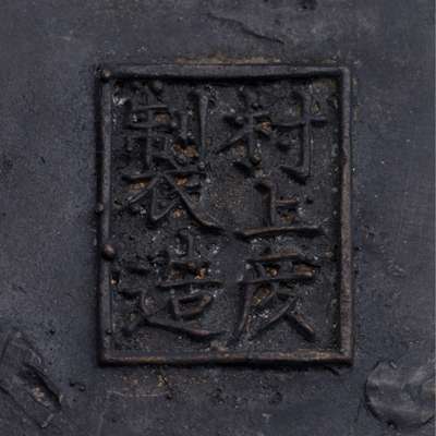 of tapered form, cast with birds perching on branches around exterior, Murakami Hiko (?) seal mark on the base