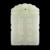 carved in a square panel with the deity of Longevity on a deer to one side, the other with eight characters read 'Sui Sui Ping An, Shi Shi Ru Yi', all below a ruyi-cloud heading, the stone of pale celadon colour