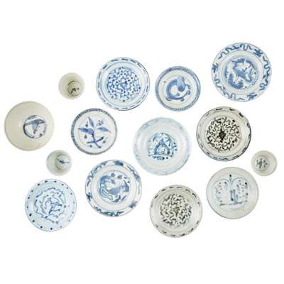GROUP OF FOURTEEN BLUE AND WHITE WARES