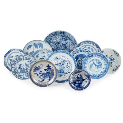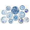 GROUP OF TWELVE BLUE AND WHITE PLATES AND CHARGERS