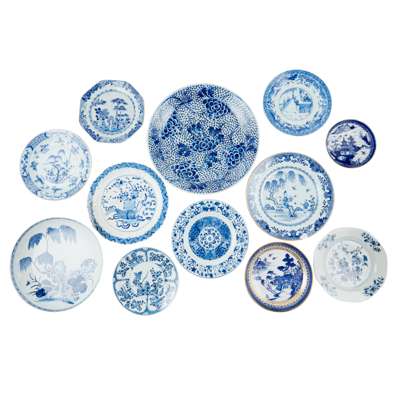 清 各色青花盤與碟(共十二件)