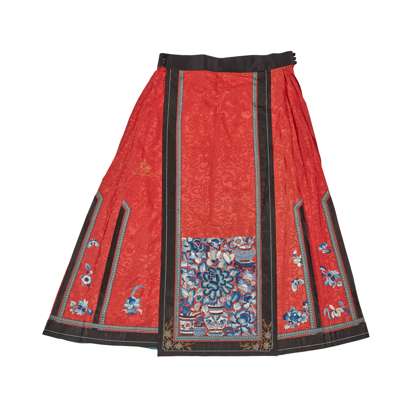 清末民初 紅地刺繡牡丹紋馬面裙