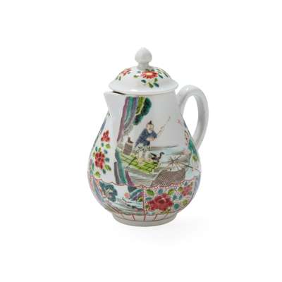 清末民初 粉彩漁樂圖帶蓋奶罐