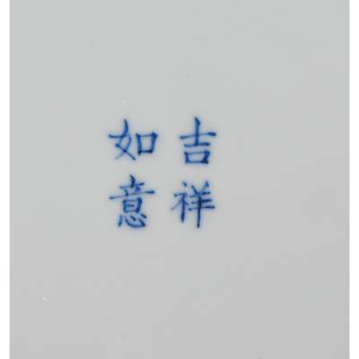 finely depicting begonia and daffodil sprays on the interior, the base inscribed with a four-character 'Ji Xiang Ru Yi' (Good fortune as one wishes) in underglaze blue