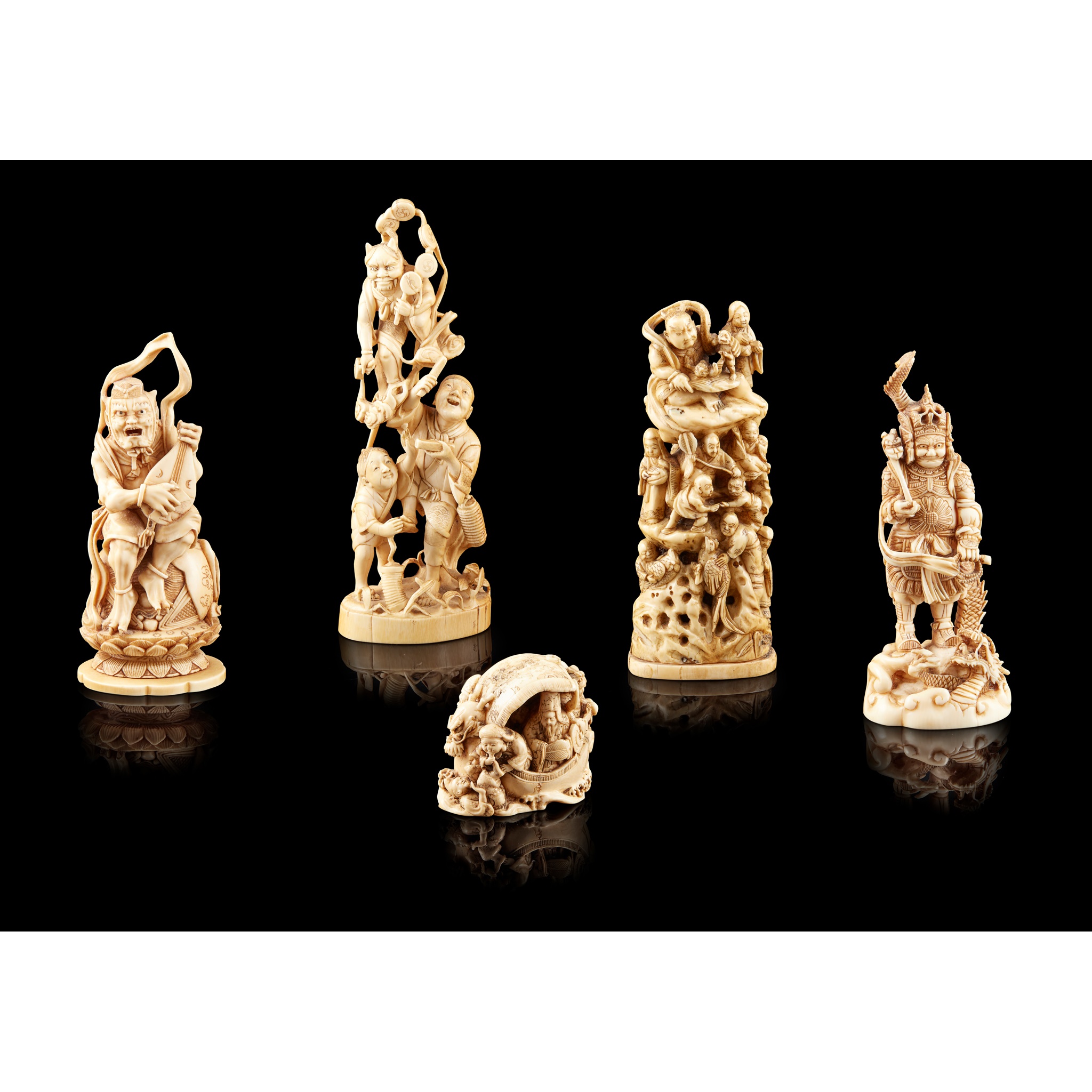 GROUP OF FIVE JAPANESE IVORY CARVINGS Y