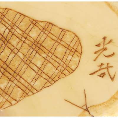 明治 光哉、寿之、一之、乐?款 各色象牙雕人物擺件(四件)及 七福神乘寶船根付
